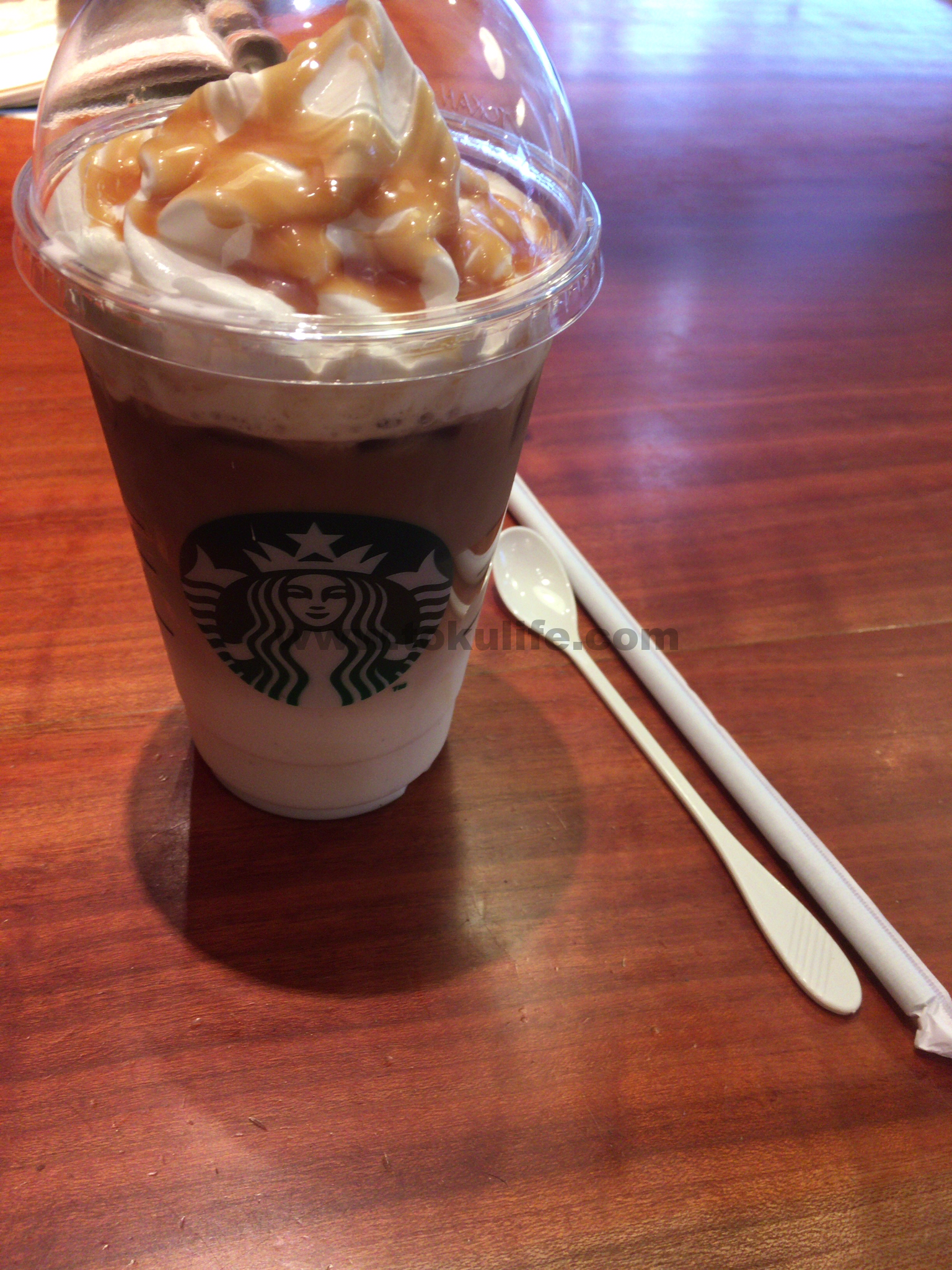 キャラメルマキアート アイスのベンティーサイズ+ホイップクリームをカスタマイズ!